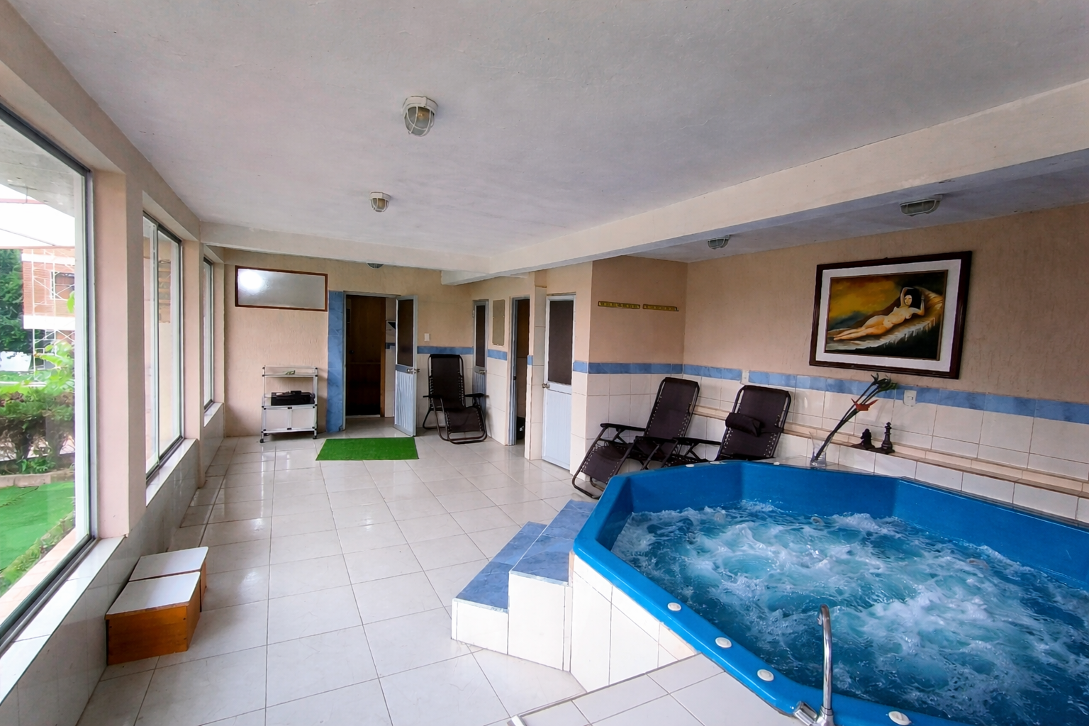 El complejo dispone de piscina, sauna, turco y jacuzzi, además de canchas de fútbol y vóley, ideales para complementar la experiencia del evento y brindar espacios de relajación y entretenimiento.